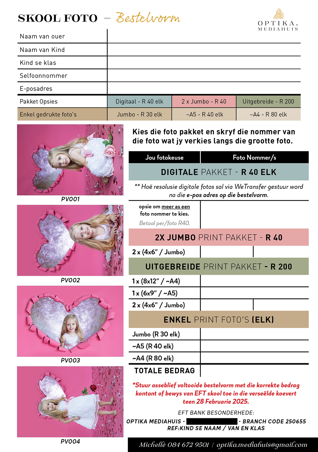 (an calculated once off payment will be done before the photo session takes place and no additional order forms will be distributed or handled by the school after the session)
