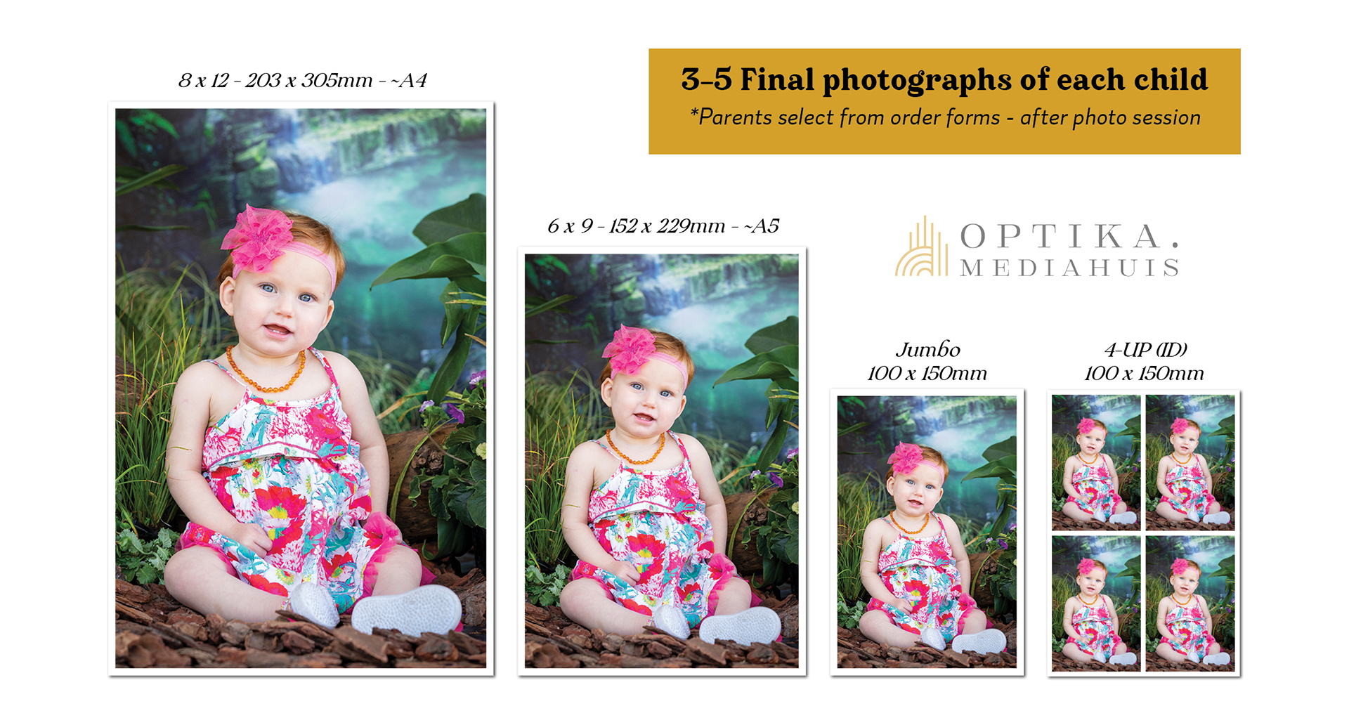*The order form contains 3-5 images of each child with their own individual codes. The parents can order their prefered print/digital package and specify the code next to the desired photo size.